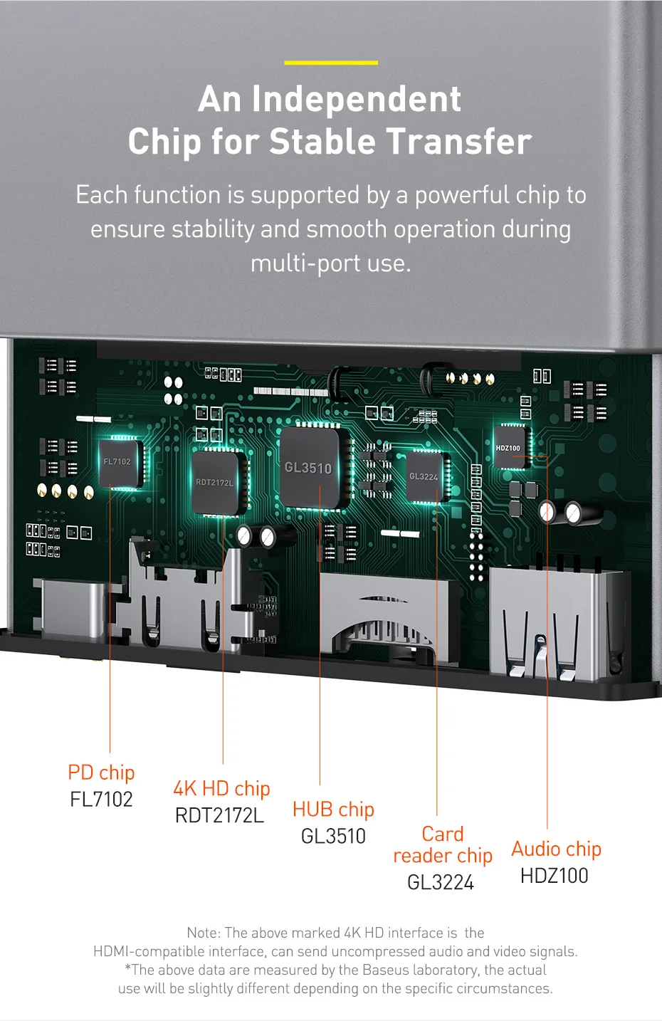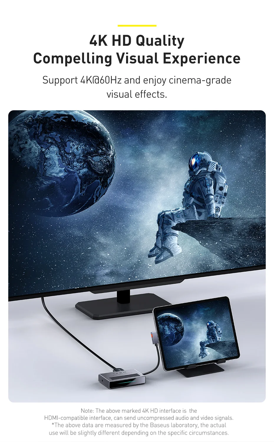 Type-C мужской порт | 3,5 разъем для наушников | USB 3,0: 500 МБ/с. | TF/SD 3,0: 104 МБ/с. | 4K HD: 4K @ 60 Гц | PD Быстрая зарядка: 100 Вт | Светло-синий индикатор