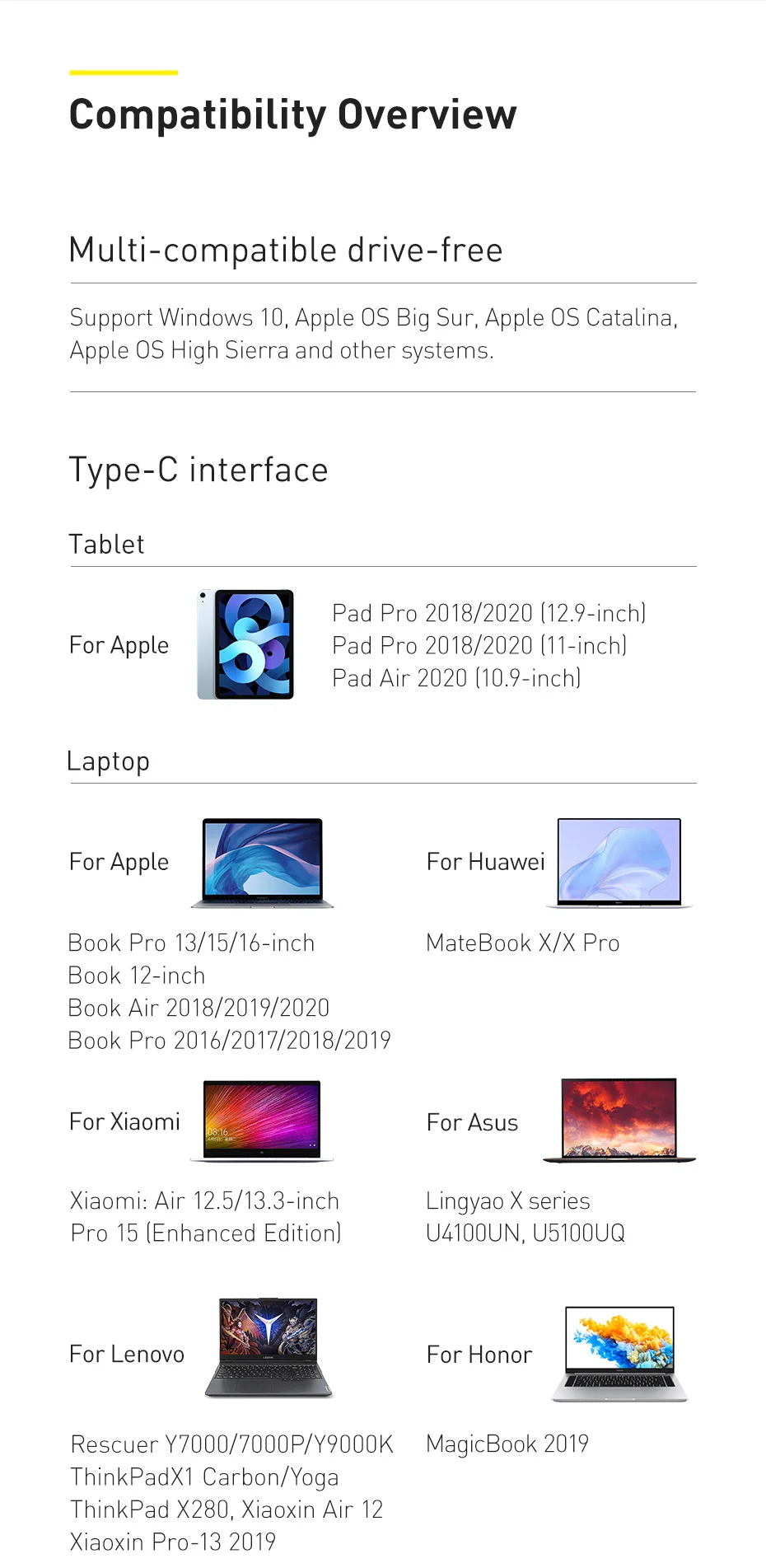 Подходит для использования ноутбука/планшета с интерфейсом Type-C для работы в офисе.