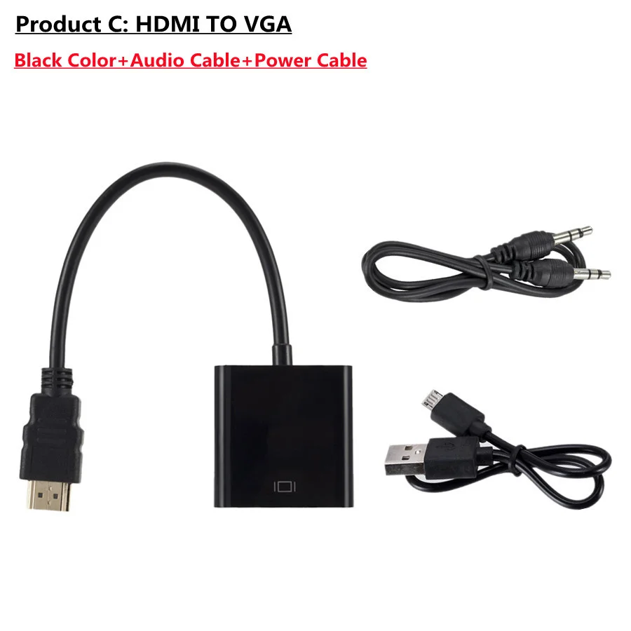 Продукт C: HDMI-VGA с аудио кабелем и кабелем питания