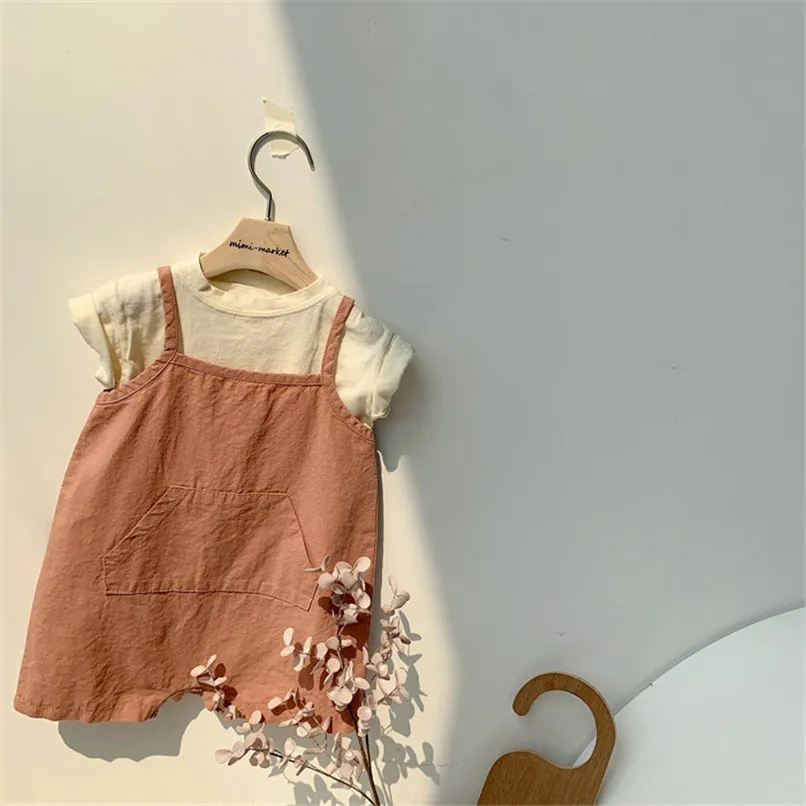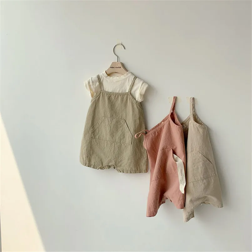 Baby Summer Sleelvess Romper For Boy and Girl Cotton Linen Made High Quality Infant Onesie One-piece front pocket design Baby Wears