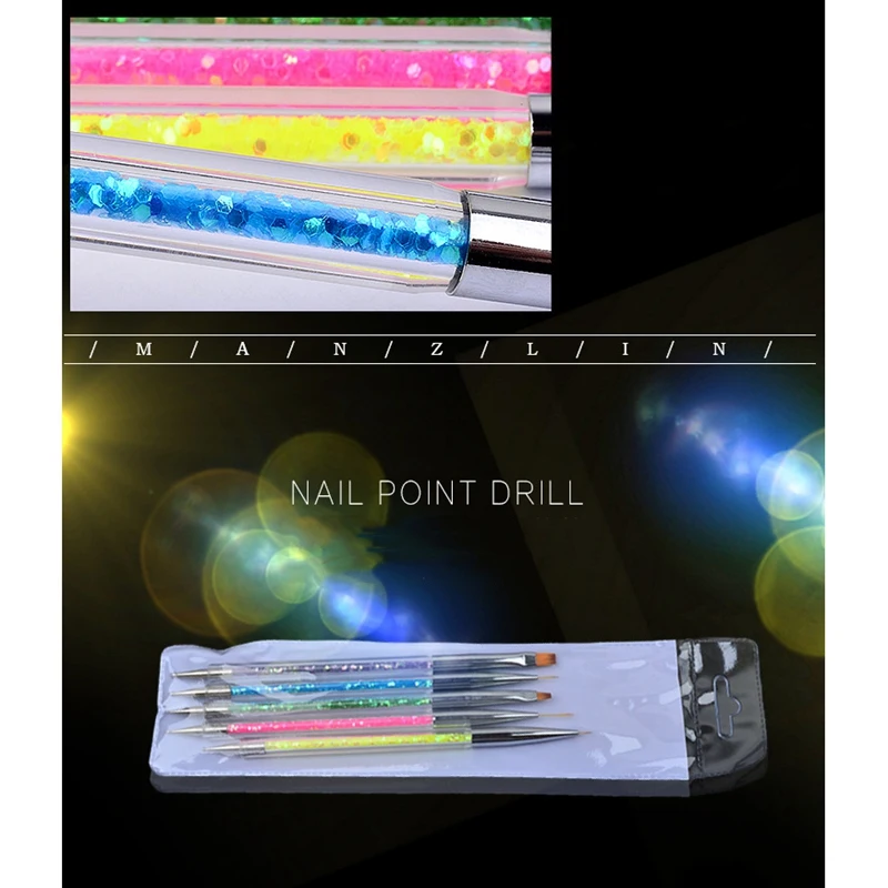 5x дизайн ногтей, ручка с кисточкой