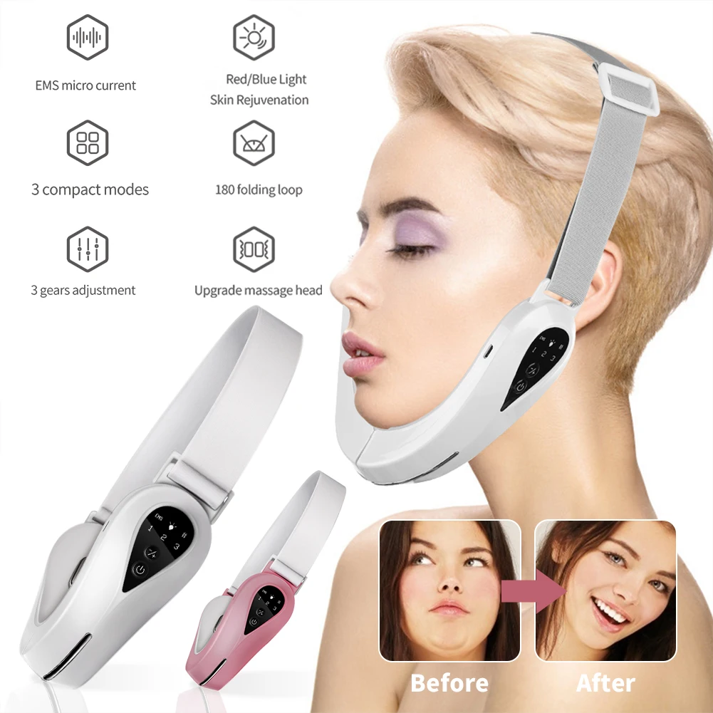 EMS массажер для лица, пояс для подтяжки подбородка, светодиодный фотон, терапия, для лица, устройство для похудения, вибрация, целлюлит, челюсть, подтяжка лица, Прямая поставка