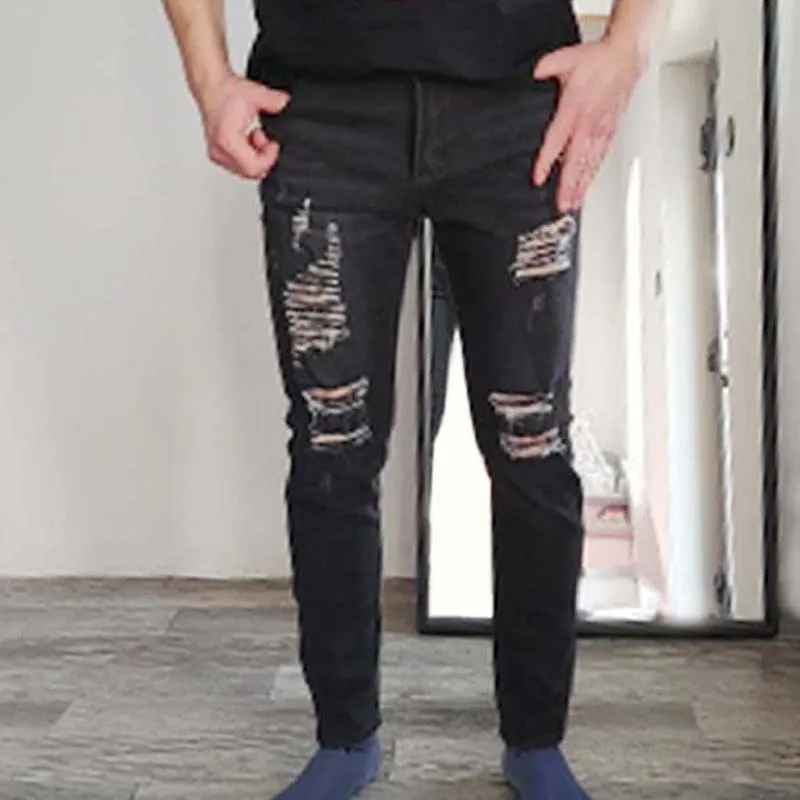 Это однотонные потертые мужские джинсы в стиле ретро, узкие и эластичные брюки, подходят для путешествий, бега, повседневной носки, очень стильные повседневные удобные джинсовые брюки. Если вам это нравится, не пропустите.