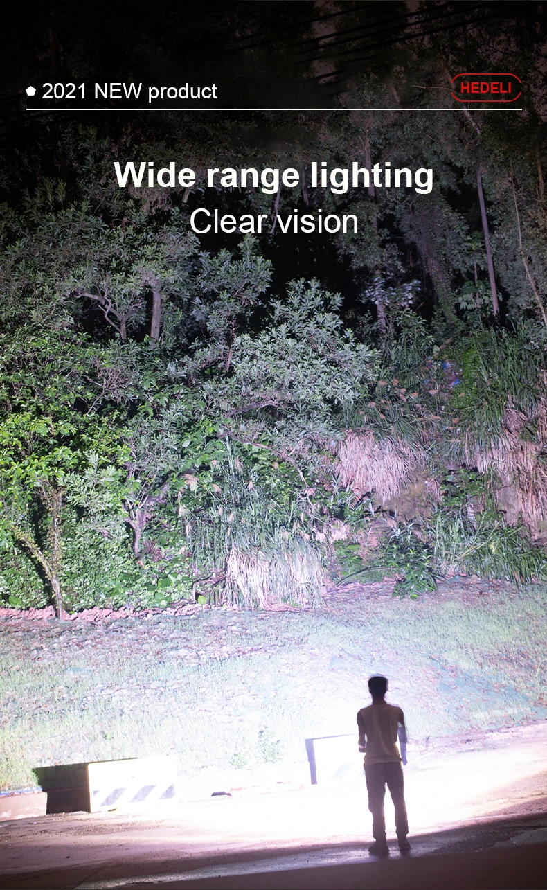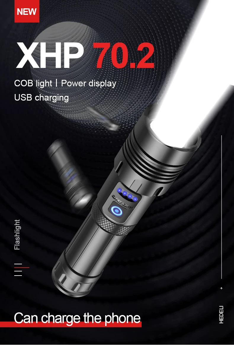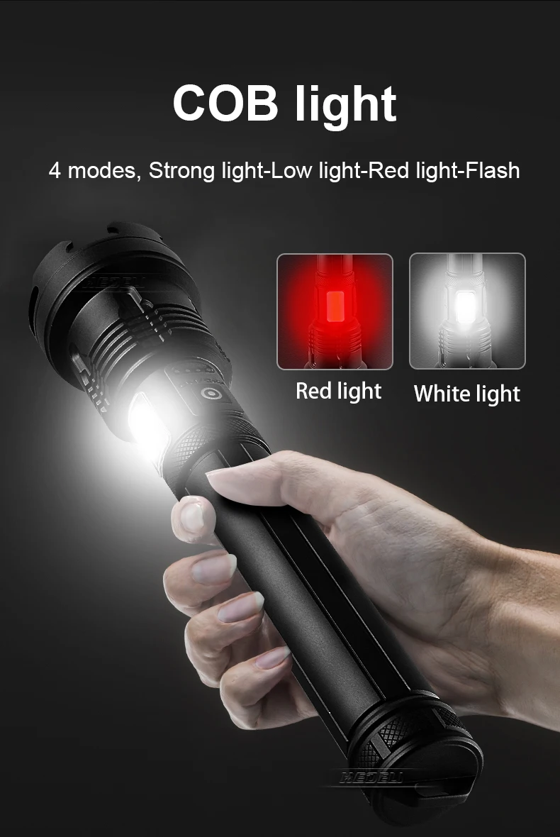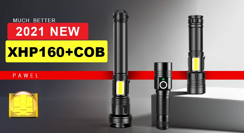 1. С помощью самого современного светодиодного фитиля XHP160 + COB, супер яркого, самого мощного фонарика
