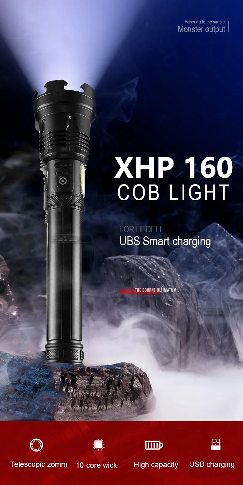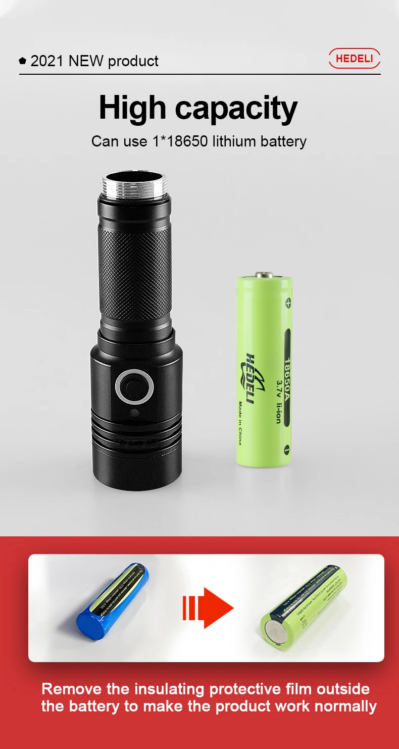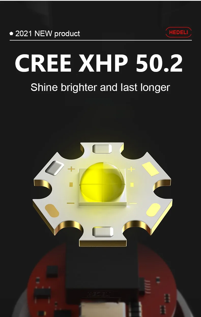 1. С помощью самого современного светодиодного фитиля XHP160 + COB, супер яркого, самого мощного фонарика