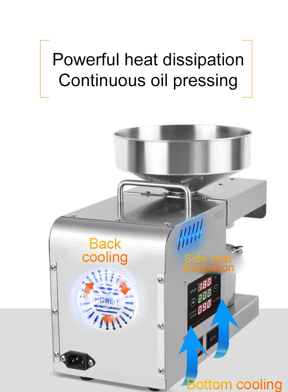 Примечание: независимо от холодного прессования или горячего прессования, наш Масляный Пресс должен быть предварительно нагревается. Только когда пресс-камера нагревается до 200 градусов Цельсия, масло может быть отделено от материала. Если машина не нагревается, материал будет сдавливаться в пасту, и смазка не может быть разделена.