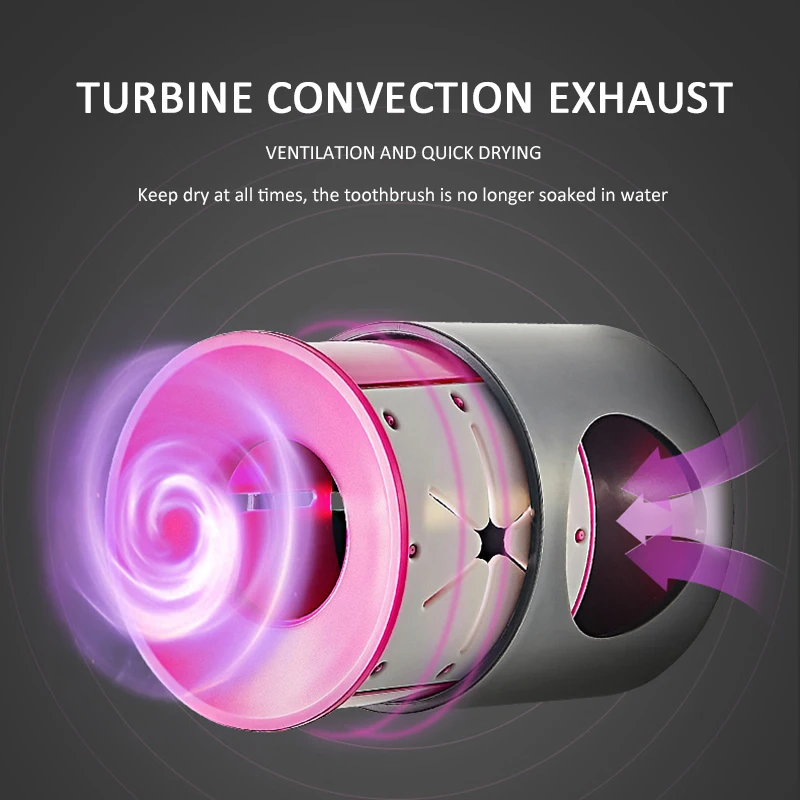2. Форма турбины, конвекционная вытяжка и быстрая сушка, сохраняют сухость в любое время, зубная щетка не замачивается в воде