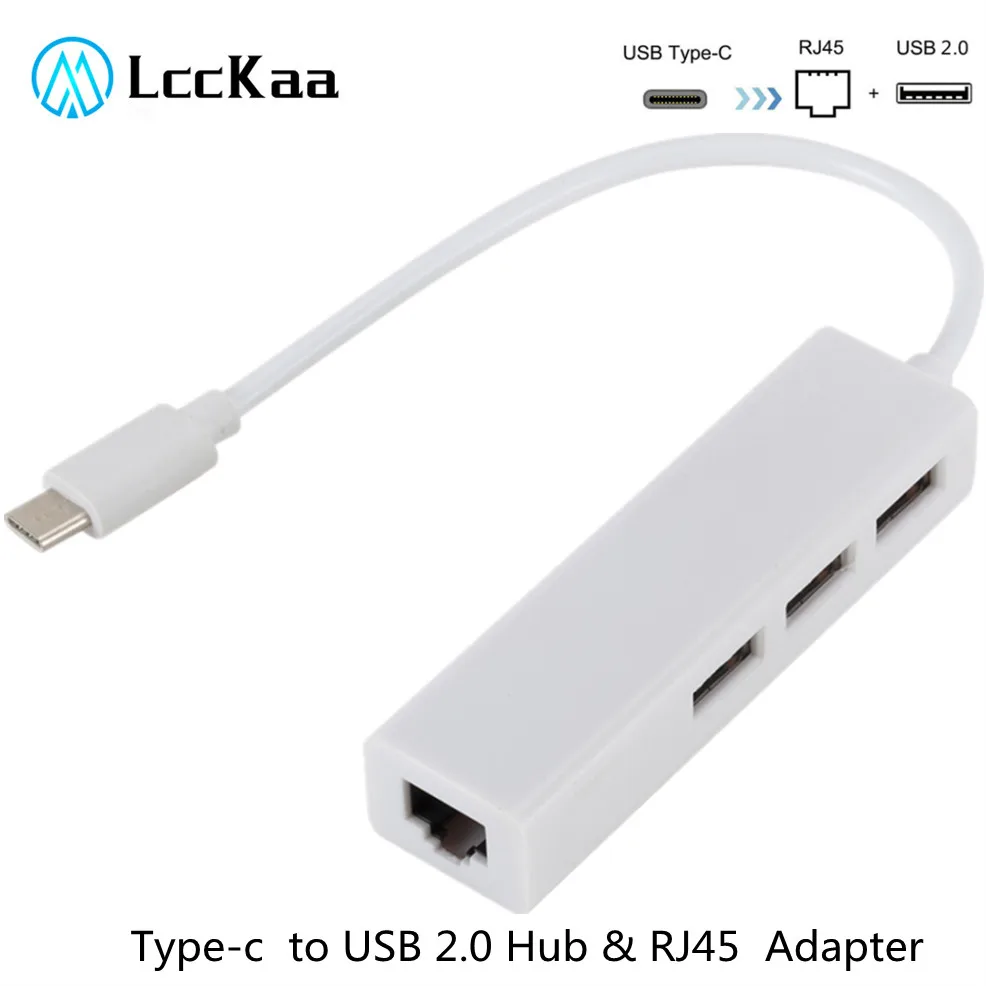 LccKaa USB 3,1 Type-c порт к usb-хаб RJ45 100 Мбит/с Ethernet порт кабель адаптер Usb-c к Usb2.0 концентратор Проводная сеть для ноутбука Macbook PC