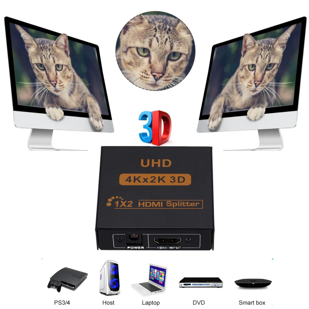LccKaa 4k 3D HDMI-совместимый разделитель Full HD 1080p видео HDMI-совместимый Переключатель 1X 2 сплит 1 в 2 выход для HDTV DVD