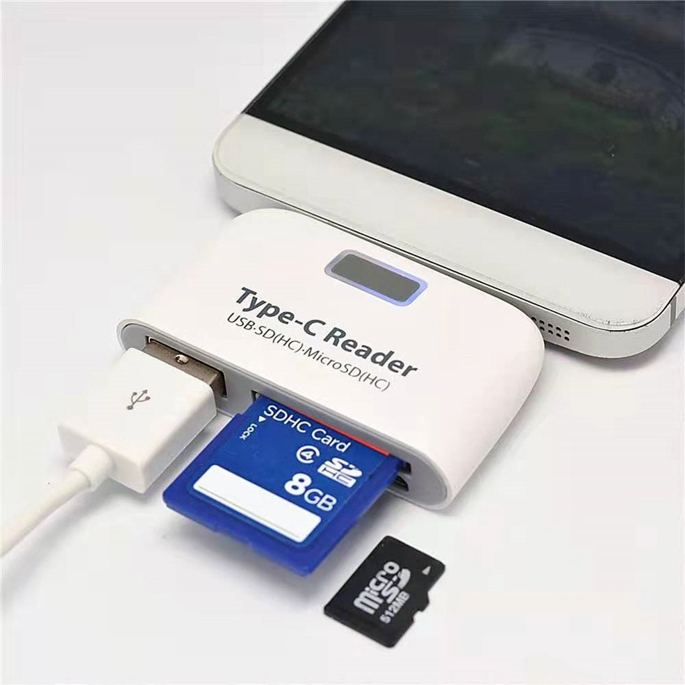 LccKaa USB 3,1 Type-C кардридер USB-C к USB 2,0 SD/Micro SD/TF OTG кард-адаптер для ноутбука/USB-C телефон TypeC многофункциональный конвертер