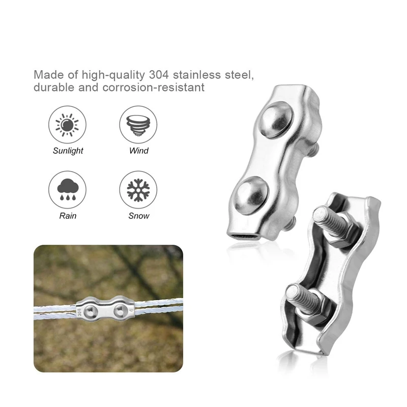 Прочный материал: Поли соединитель каната изготовлен из нержавеющей стали 304, который является прочным и прочным, так что вы можете использовать их в течение длительного времени, благодаря своим функциям вы можете легко и безопасно отремонтировать свои заборы и связать провода, чтобы избежать ненужных потерь