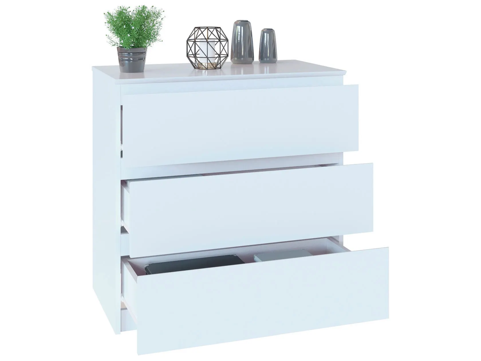 Искристо-белый тон поможет без труда интегрировать комод в интерьер любого стиля и цвета.