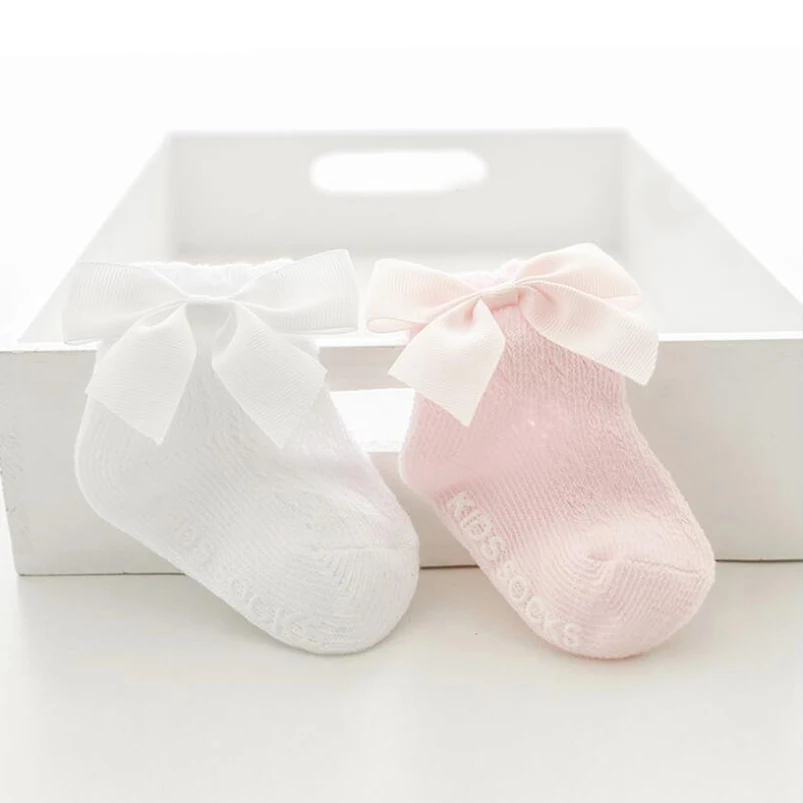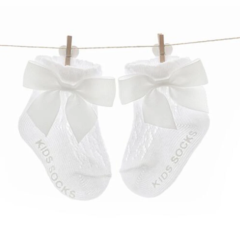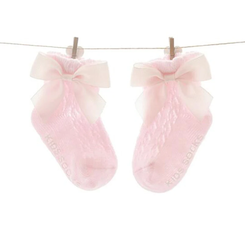 Милые хлопковые носки для маленьких девочек весенне-летние розовые/белые носки с бантом для новорожденных девочек, мягкие дышащие носки по щиколотку