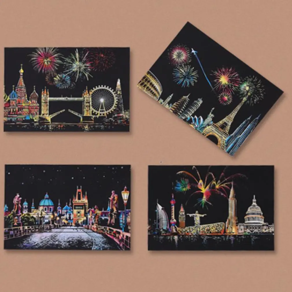 4 шт./компл. Волшебная Красочная доска для рисования А5 бумага для выскабливания детей Обучающие Развивающие игрушки рисование каракули царапины игрушки