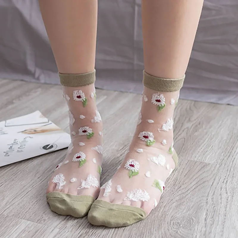 Product Description Features : 100% brand new and high quality. Women embroidered flower transparent socks. Breathable,sweat-absorbent,anti-friction. A good partner for you. It can also be a gift to your classmates,friends and lovers. Material : Silk Size : Free Size Color : red/white/black/purple/green/navy blue/yellow Pattern : Embroidered Daisy Packing : 1Pair NOTE 1.Please allow slight deviation for the measurement. 2.Due to the light and screen difference, the item's color may be slightly different from the pictures,thanks for understanding.