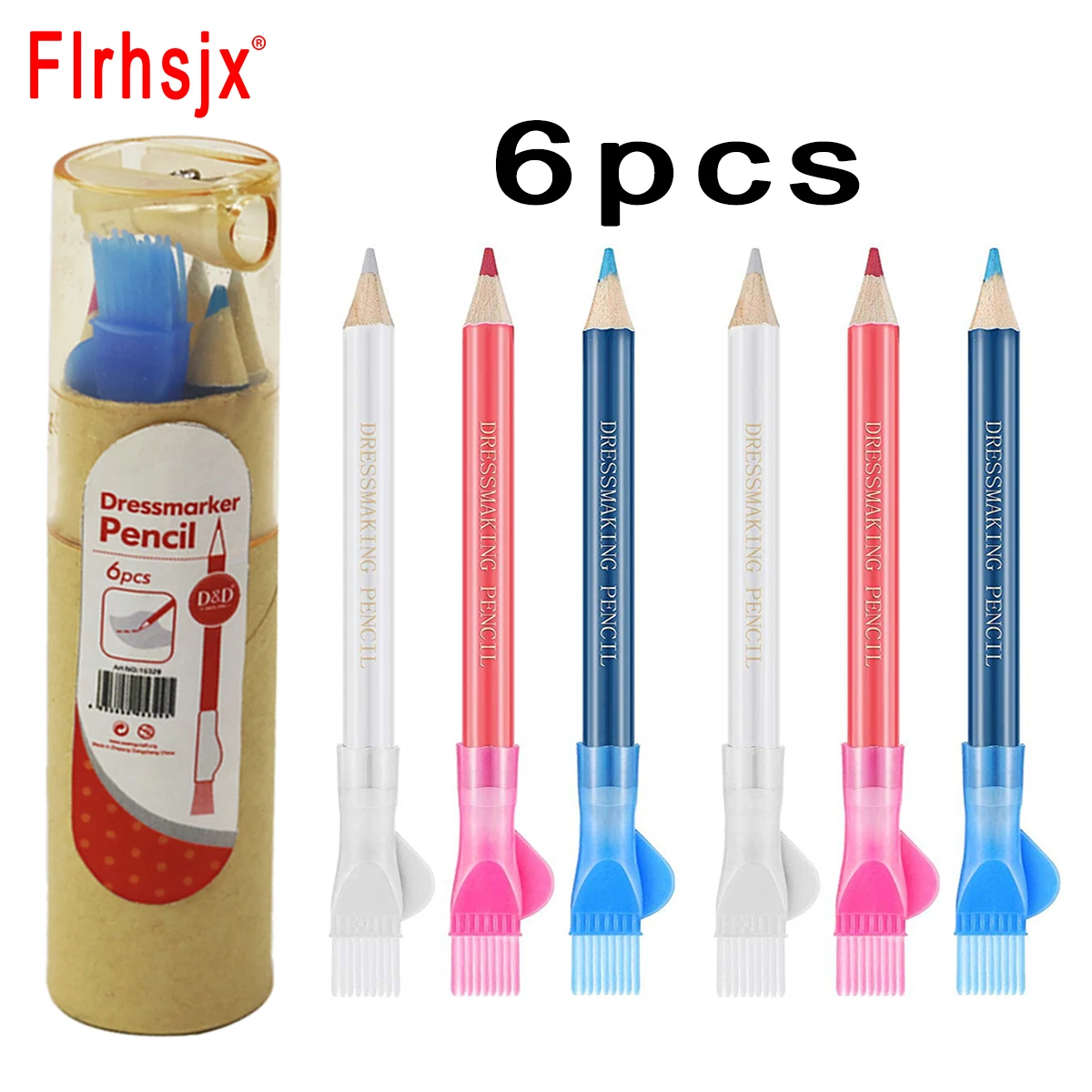 FLRHSJX 6 шт., швейные карандаши с точилкой, ткань, Водорастворимая Ручка, меловый карандаш для портного с крышкой для кистей, инструменты для изготовления платьев