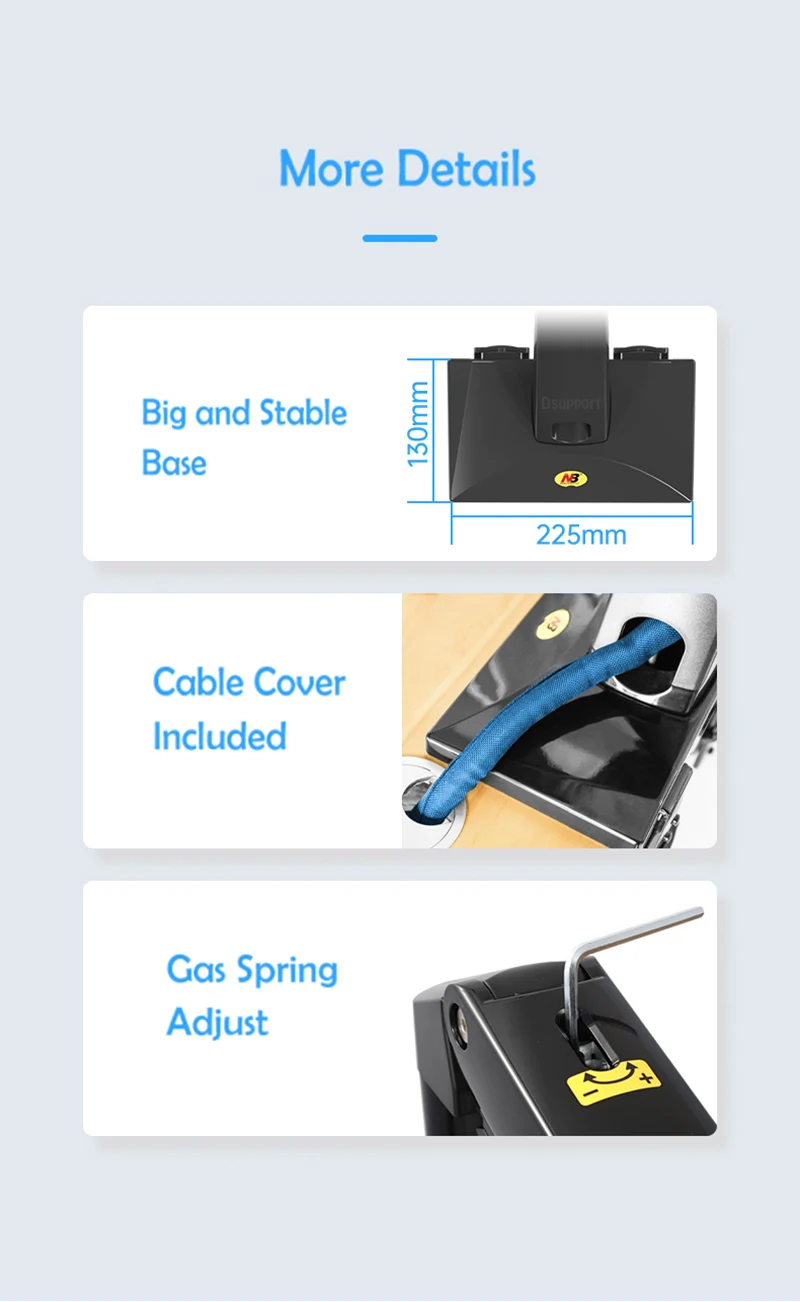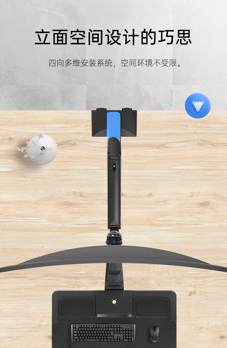 NB40 позволяет вам поворачивать дисплей влево, вправо, вверх и вниз с полным диапазоном движения обеспечивает непревзойденный эргономический комфорт, повышает здоровый стиль жизни и улучшает продукцию как в домах, так и в офисах.