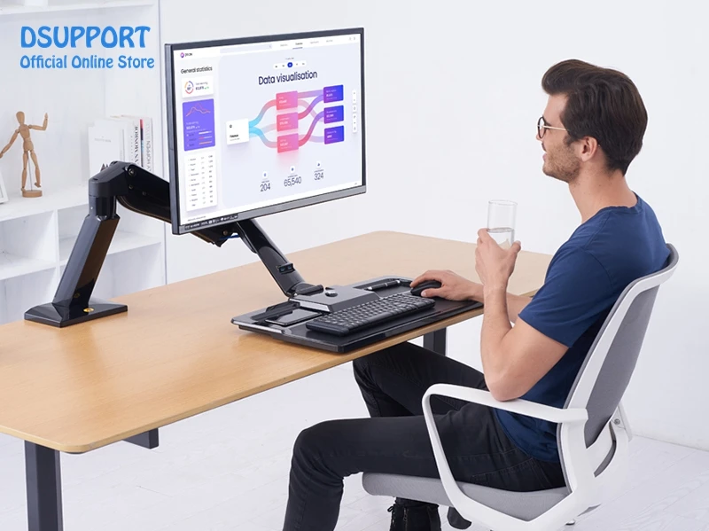 Регулируемый по высоте дисплей и клавиатура легко перемещаются и одновременно поднимаются для правильной высоты, что позволяет легко садиться или стоять по требованию по вашему выбору. Выдвижная и складная клавиатура обеспечивает настройку клавиатуры и выталкивает руку, когда вам нужна поверхность и пространство вашего стола.