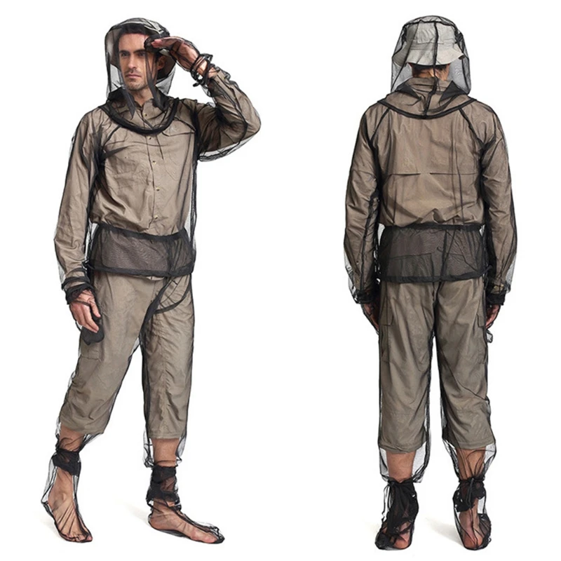 Mos-quito-устойчивая куртка с головным убором, противомоскитные перчатки, противомоскитные износостойкие брюки и противомоскитная Крышка для ног