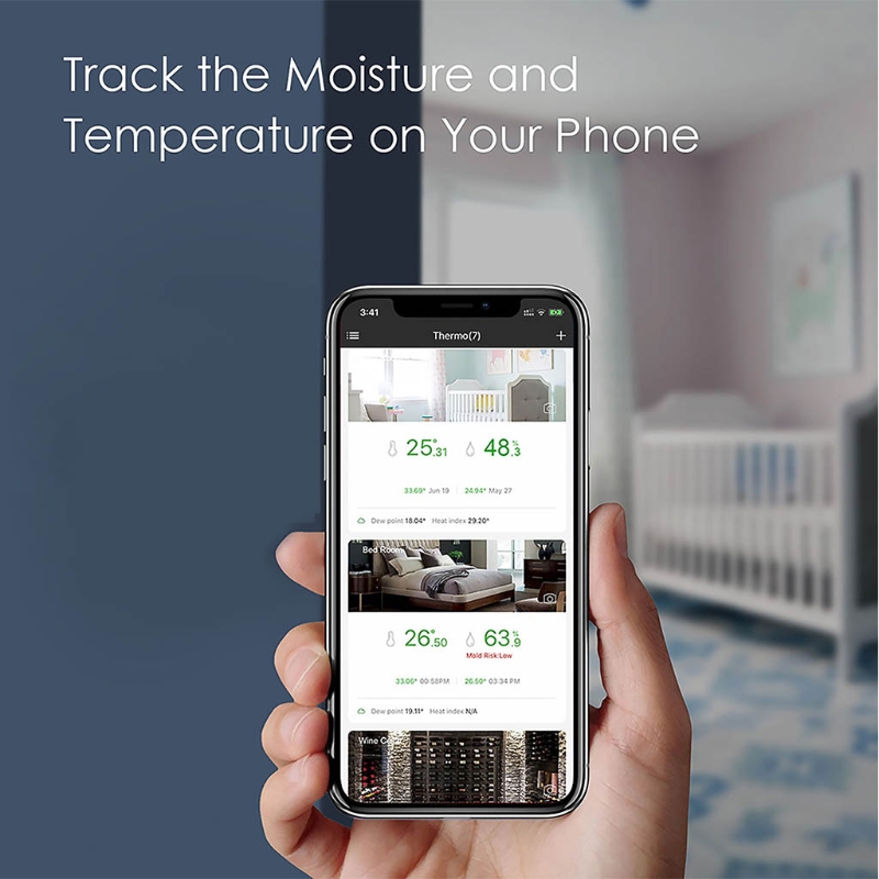 Измеритель влажности широко используется в холодильниках, детских комнатах, балконах, автомобилях, коробках для сигар, кроватях для домашних животных, коробках для лекарств и т. д.
