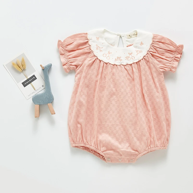 Винтажный комбинезон с цветочной вышивкой и воротником для девочек; Летняя одежда; Короткий комбинезон с пышными рукавами для малышей; Одежда для маленьких девочек