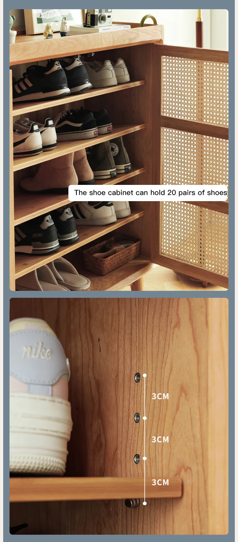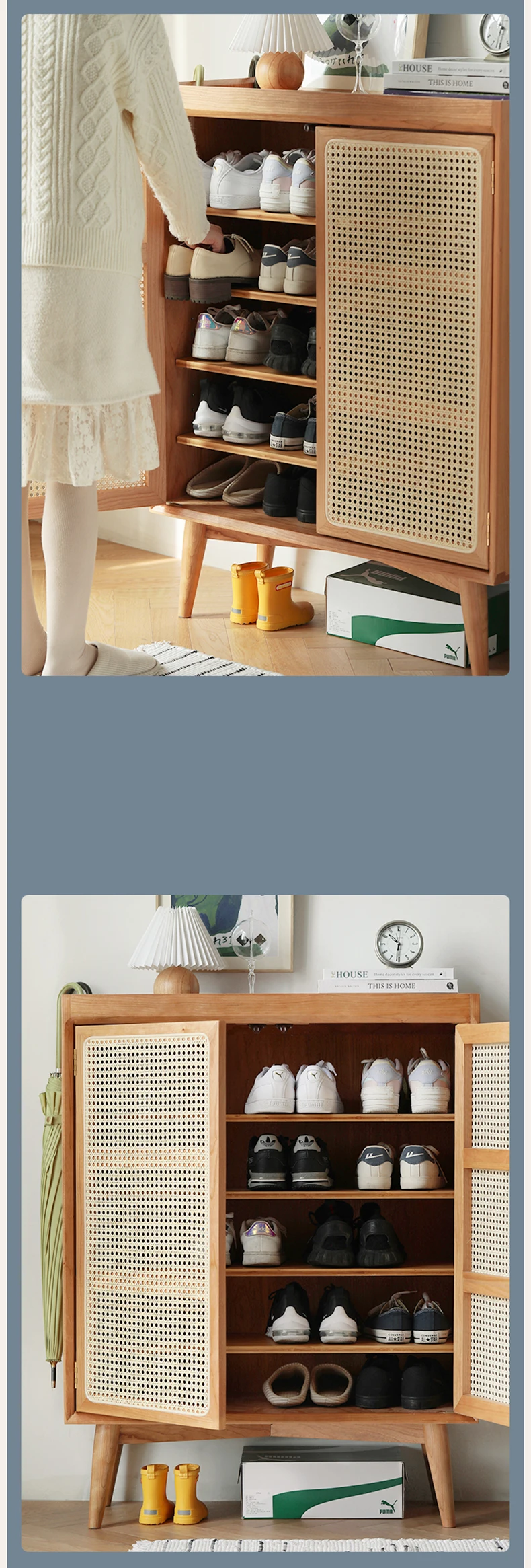 Шкаф для обуви крыльцо для дома большой емкости для хранения Плетеный Из Ротанга дышащий белый дуб