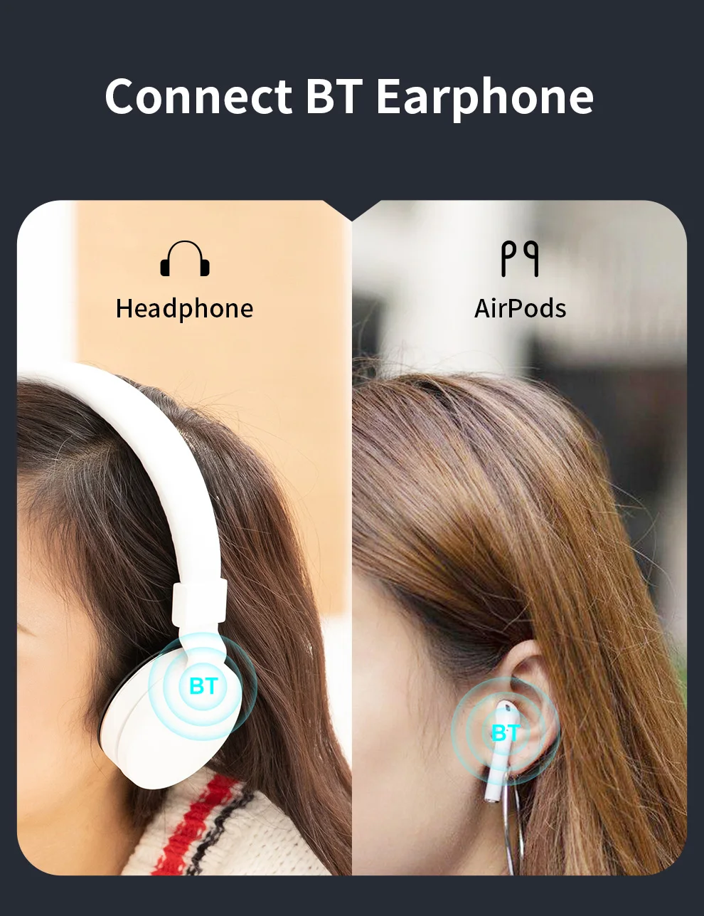 Советы:Подключение 5 беспроводных устройств через Bluetooth 5,0 dongle одновременно, но музыка передаёт только на 1 аудиоустройство одновременно.