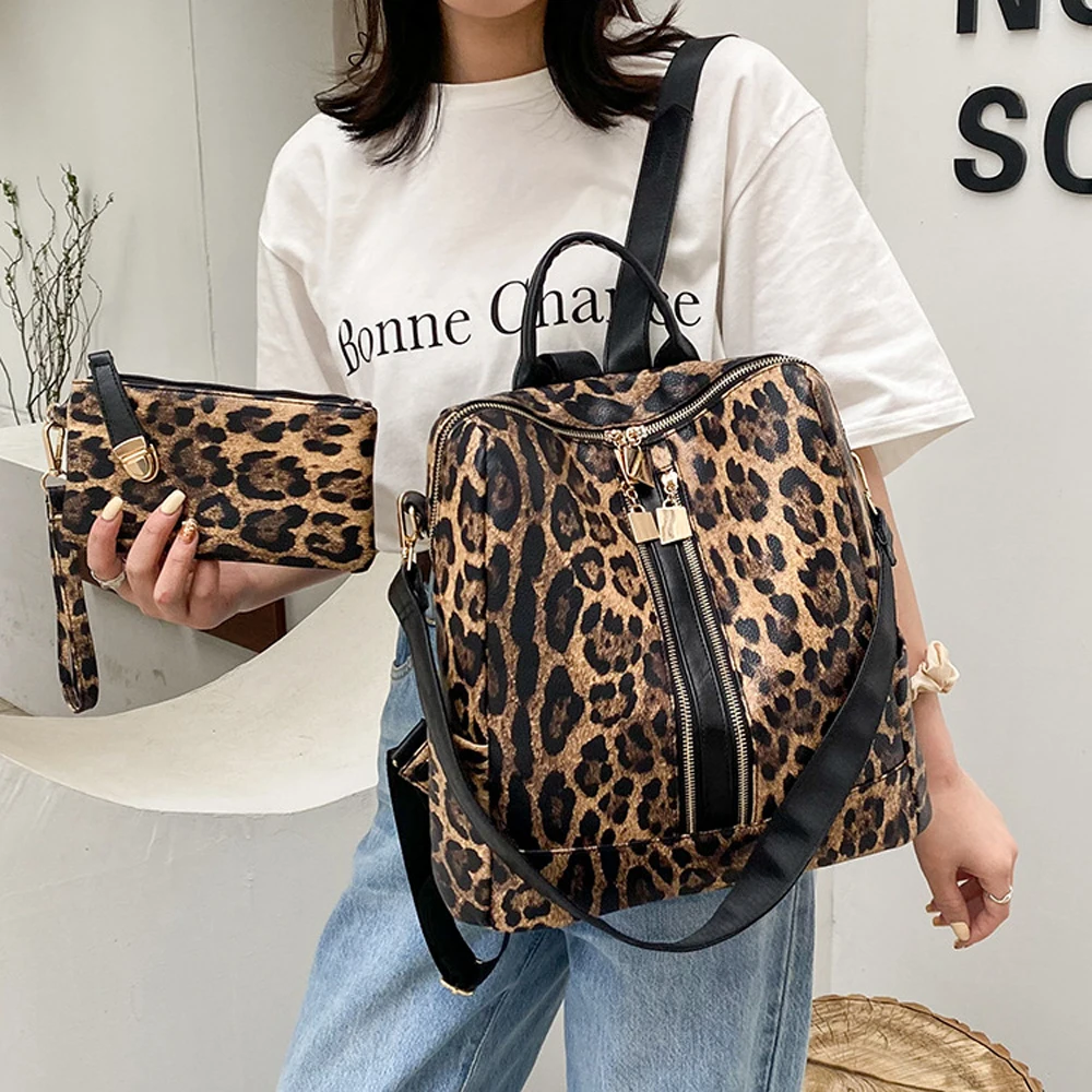 Леопардовые школьные сумки для девочек-подростков в европейском и американском стиле