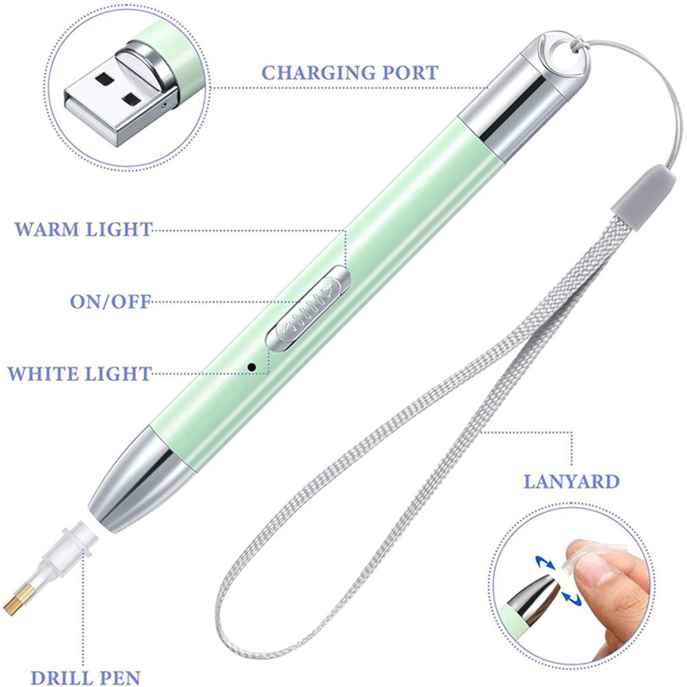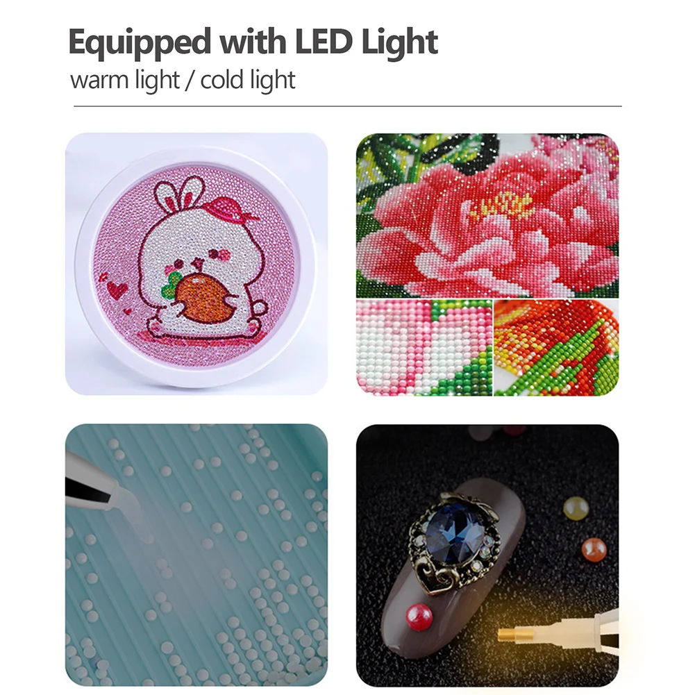 * 2. [Удобная зарядка]-просто подключите его непосредственно к мобильному источнику питания, адаптеру, usb-разъему, удобно заряжать в любое время и в любом месте, светильник поможет вам разместить бриллиант в нужном месте, он также может эффективно уменьшить усталость глаз.