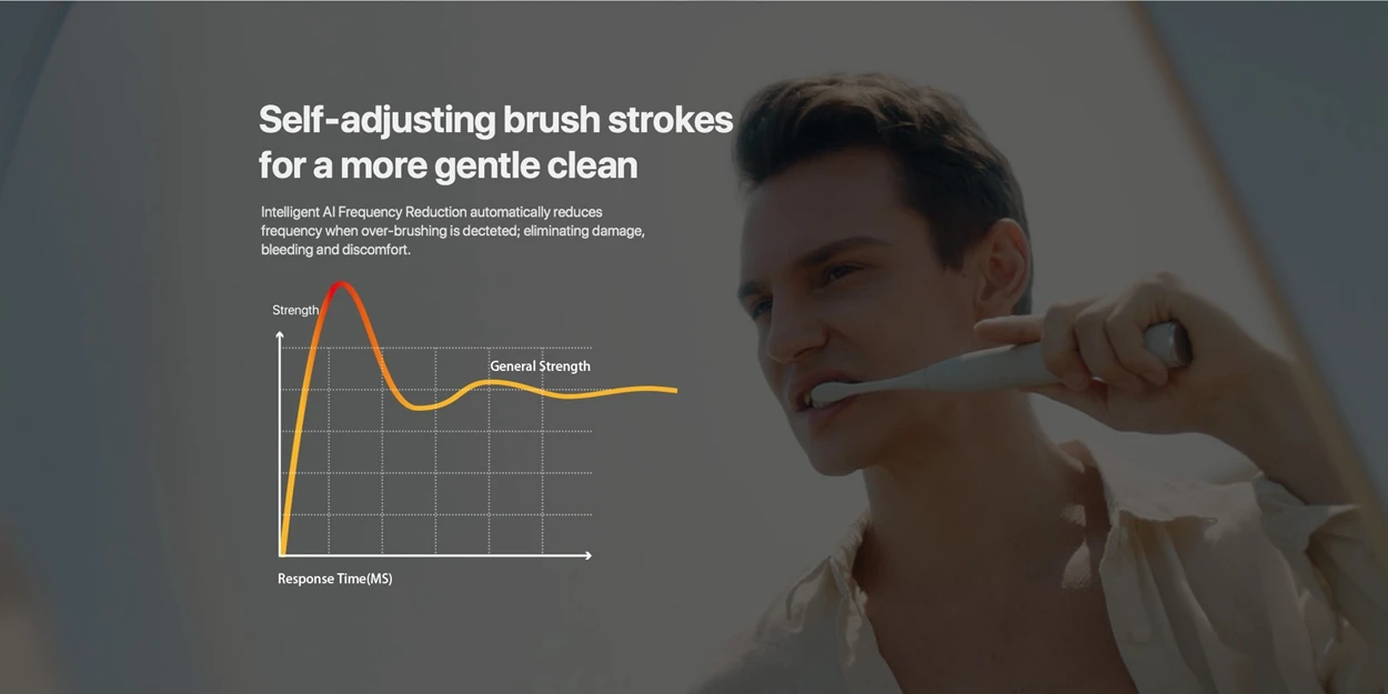 Интеллектуальное Снижение частоты автоматически уменьшает частоту при дешифровании при чрезмерной чистке; Устраняет повреждения, кровотечение и дискомфорт.