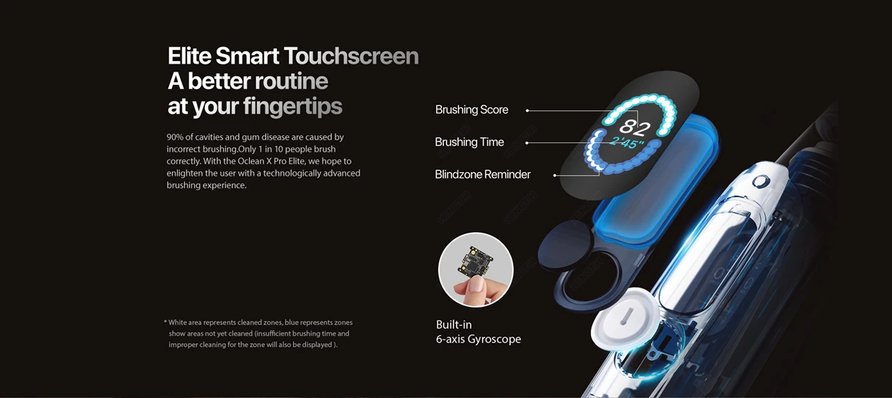 90% полостей и заболеваний десен вызваны неправильной чисткой. Только 1 в 10 человек чистят правильно. С Oclean X Pro Elite, мы надеемся просветить пользователя с технологически передовым опытом чистки.