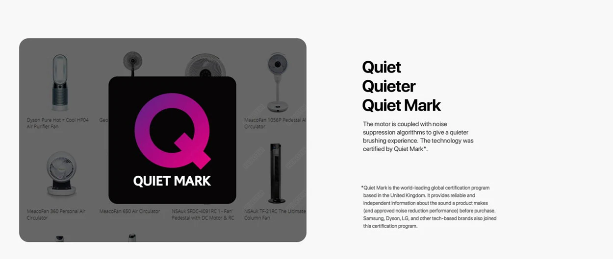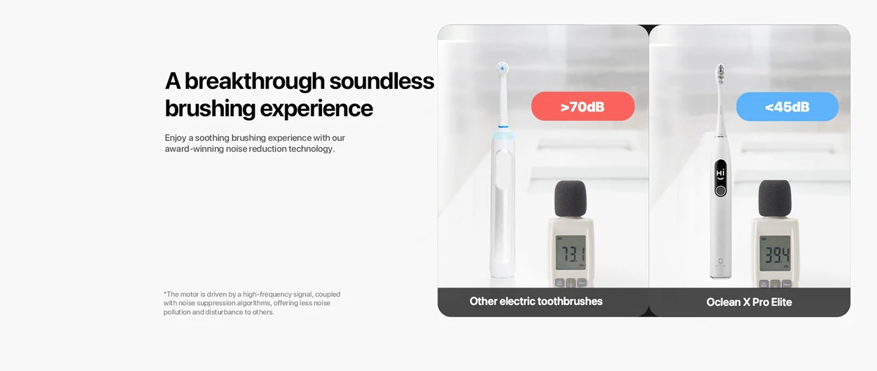 Наслаждайтесь успокаивающим эффектом чистки с помощью нашей отмеченной наградами технологии снижения уровня шума.