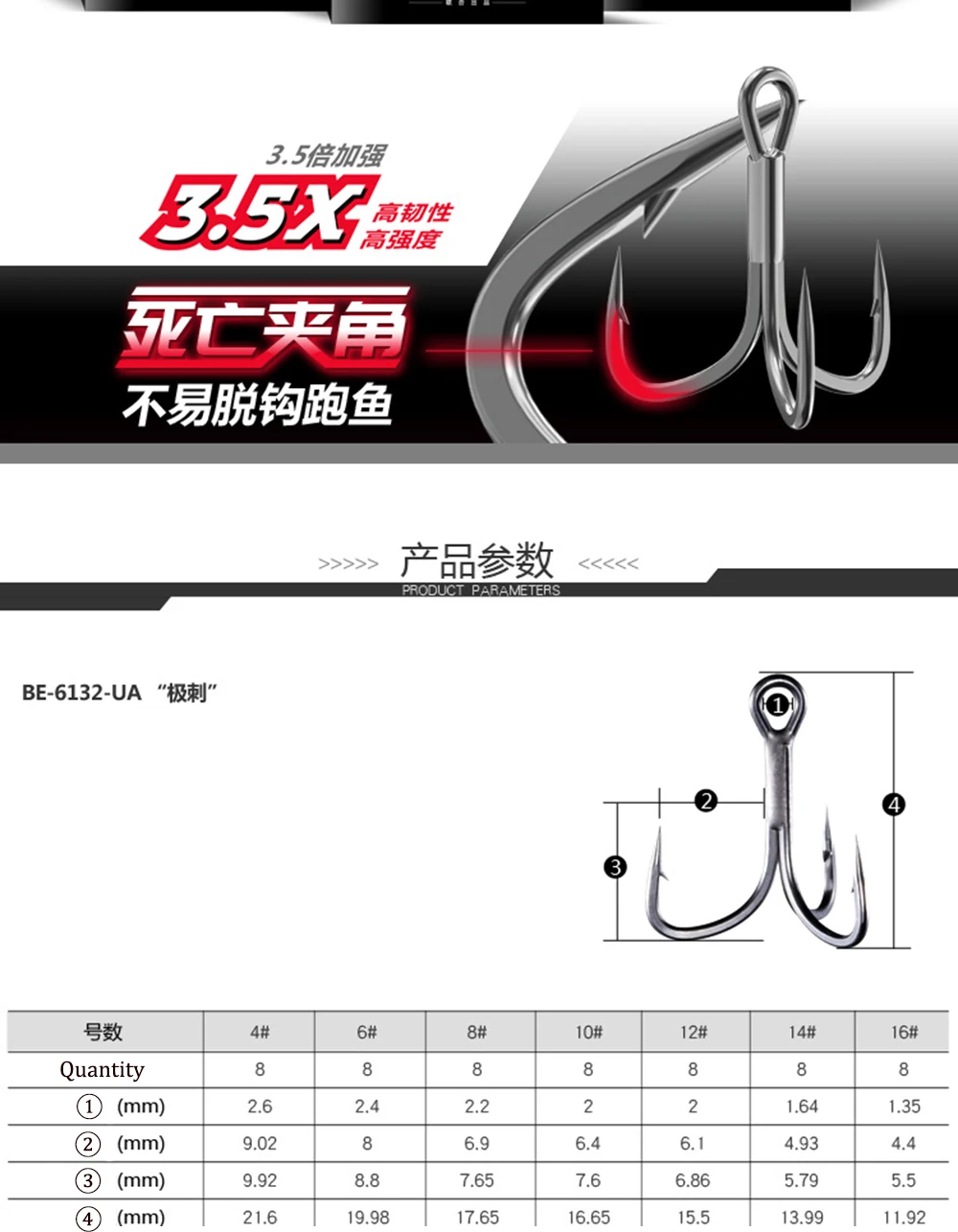 EWE BE-6132-UA Антикоррозийные тройные Крючки с антикоррозийным покрытием 3,5x супер сильные острые тройные Якорные большие игровые крючки для морской рыбалки