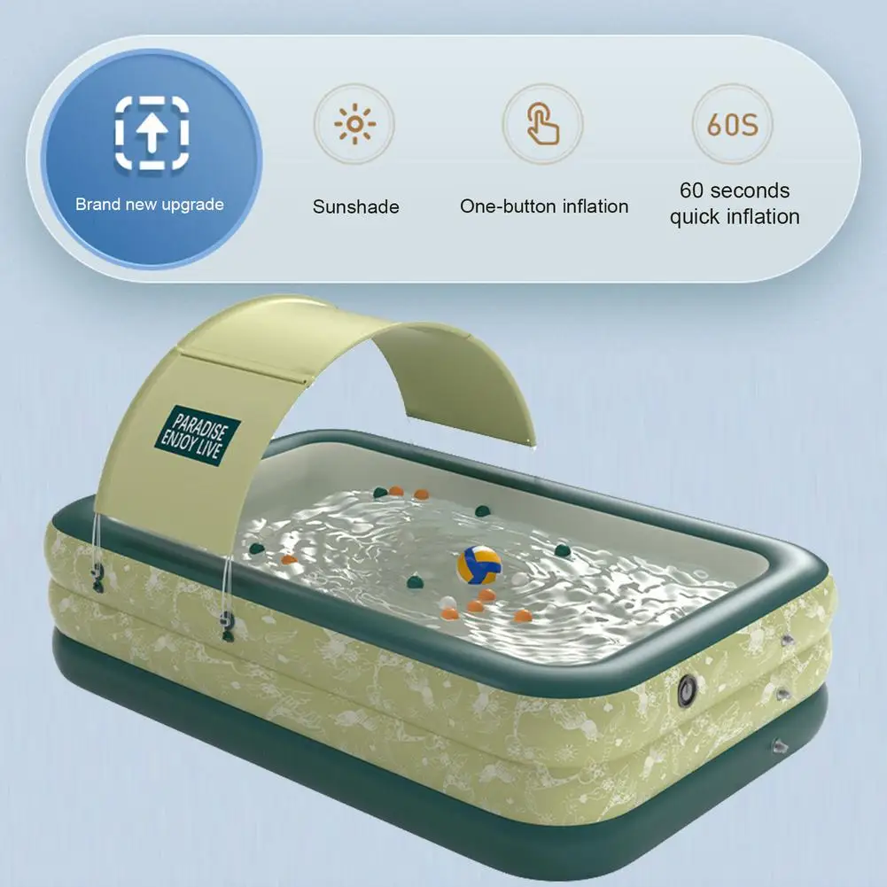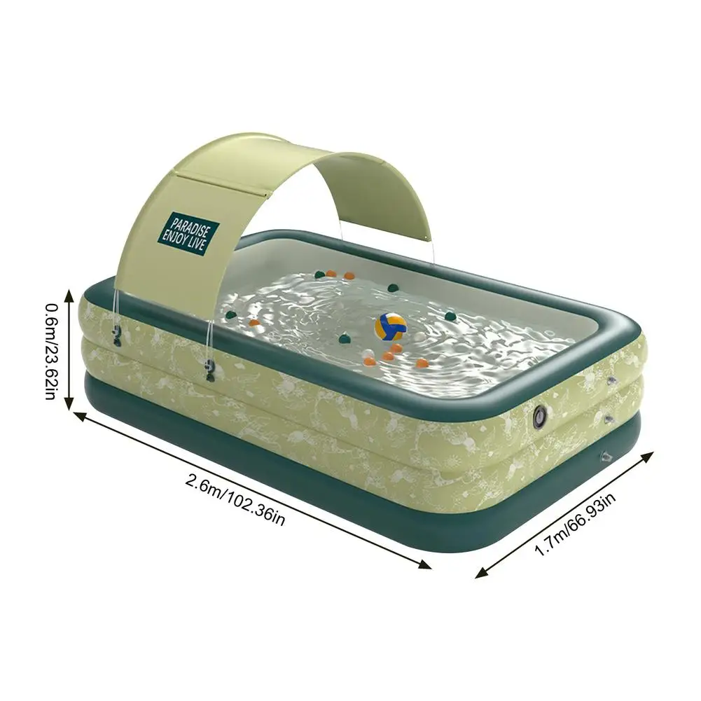 1. С навесом: оснащен подвижным тентом для предотвращения необходимости отдыха после принятия солнечных ванн. Он может покрыть третью часть бассейна, достаточно для размещения ребенка и прост в установке и разборке, когда он не используется.