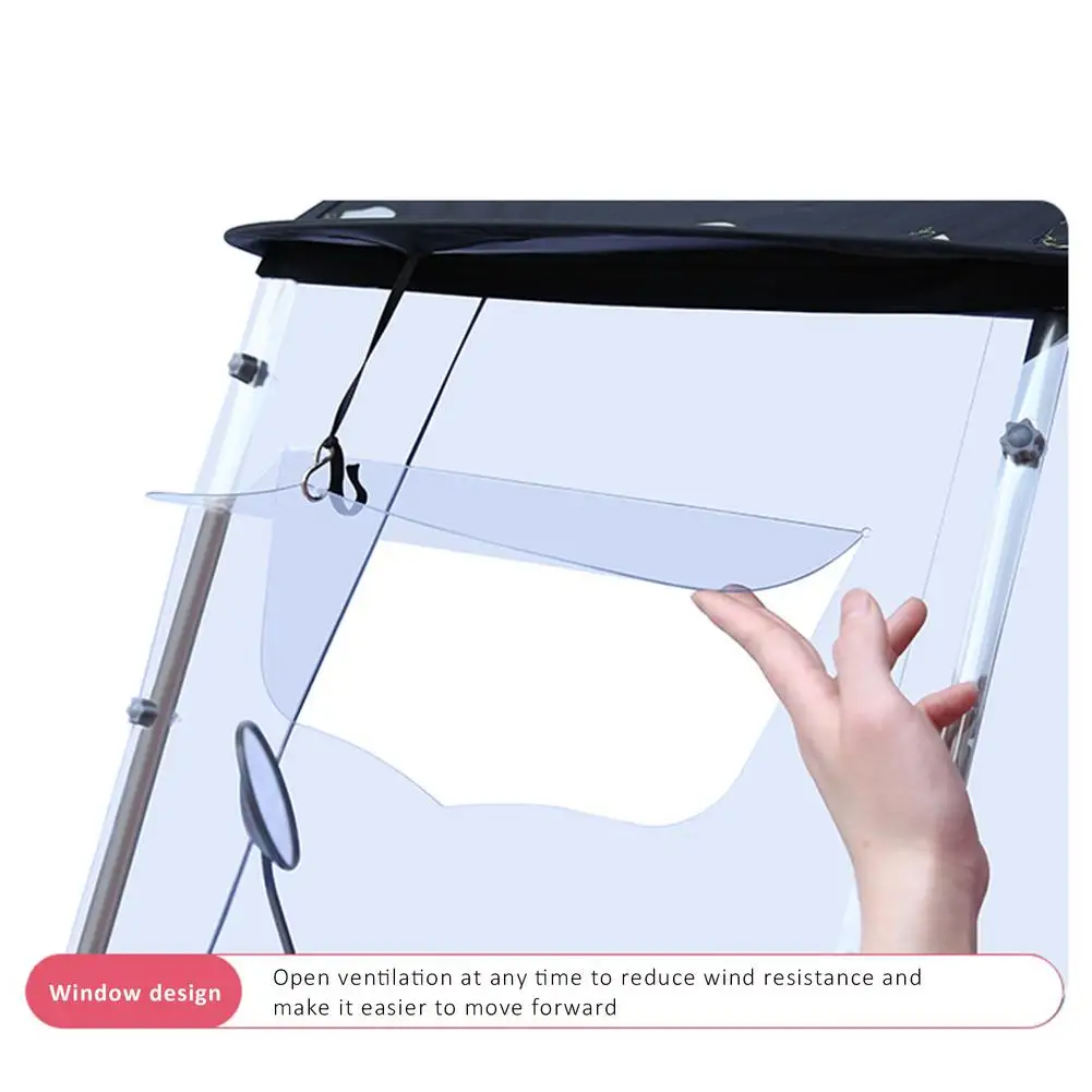 2. Со светоотражающей полоской: безопасные светоотражающие полосы специально разработаны для ночной езды, которые могут отражать окружающий светильник ночью и воспроизводить определенный предупредительный эффект на прохожих и водителей; боковые шторы снимаются, легко разбираются и снимаются при комфортной погоде. Вы можете носить его в холодную погоду и использовать зонтик, чтобы блокировать больше дождя и солнечного света.