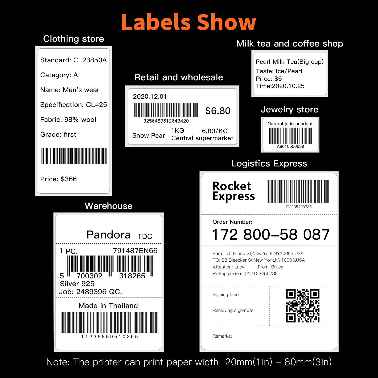 ▶[Многофункциональное устройство] 3 дюйм (ов) этикеток Принтер совместимый с различных платформ, супермаркет, розничный магазин, магазин одежды, почтовый пакет промышленности, медицинской промышленности, дома, в офисе. Этикетка для пищевых продуктов, этикетка для одежды и различные этикетки.