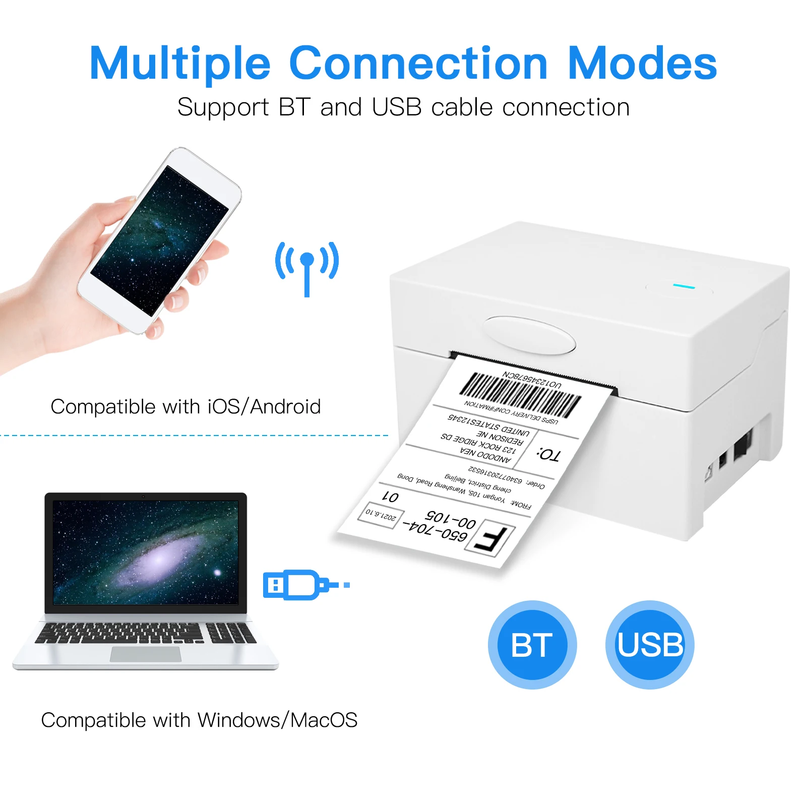 ▶[Идеальный принтер этикеток] принтер этикеток подключается через USB и BT подключение и USB, 2 варианта на выбор. Вы можете напечатать изображение, штрих-код, qr-код, номер и время, отсканировать текст и распознать текст и штрих-код и т. Д. Версия с функцией BT, которая более удобна для проектирования этикетки на вашем мобильном устройстве, как вам нужно.