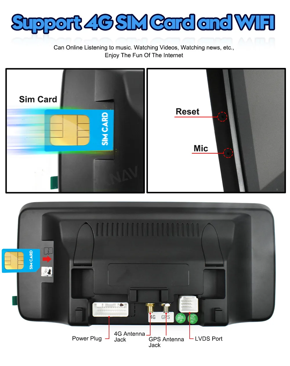 Можно вставитьКарта 4GВ нашем автомобильном радио поддержка 4G WIFI.