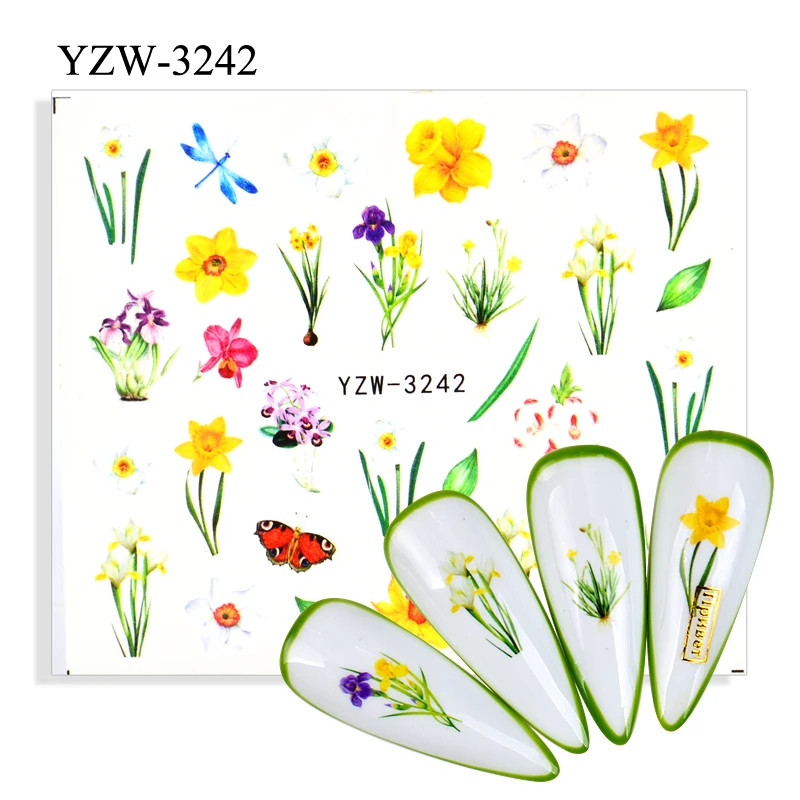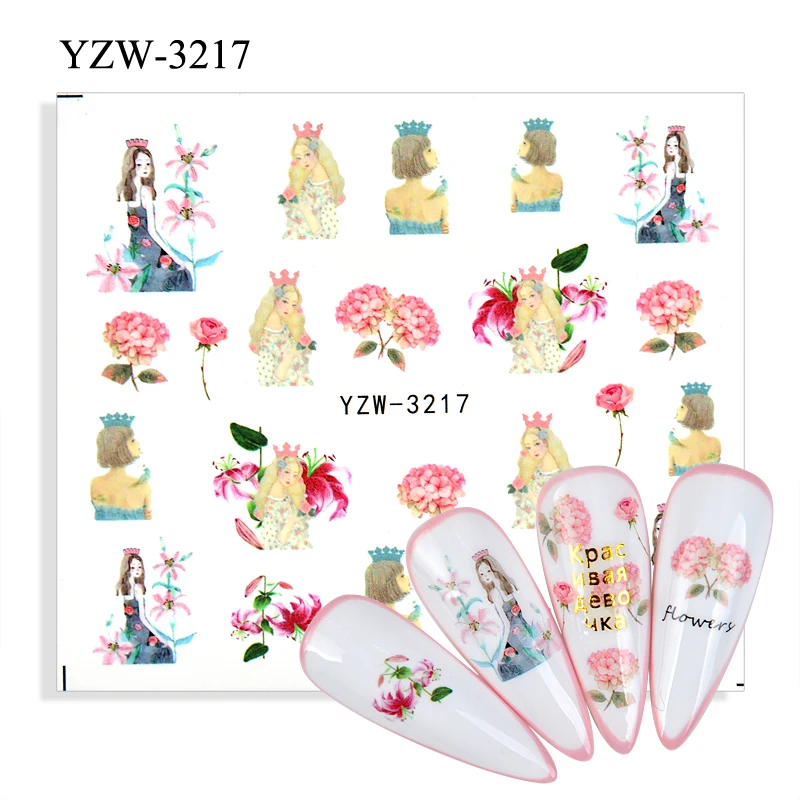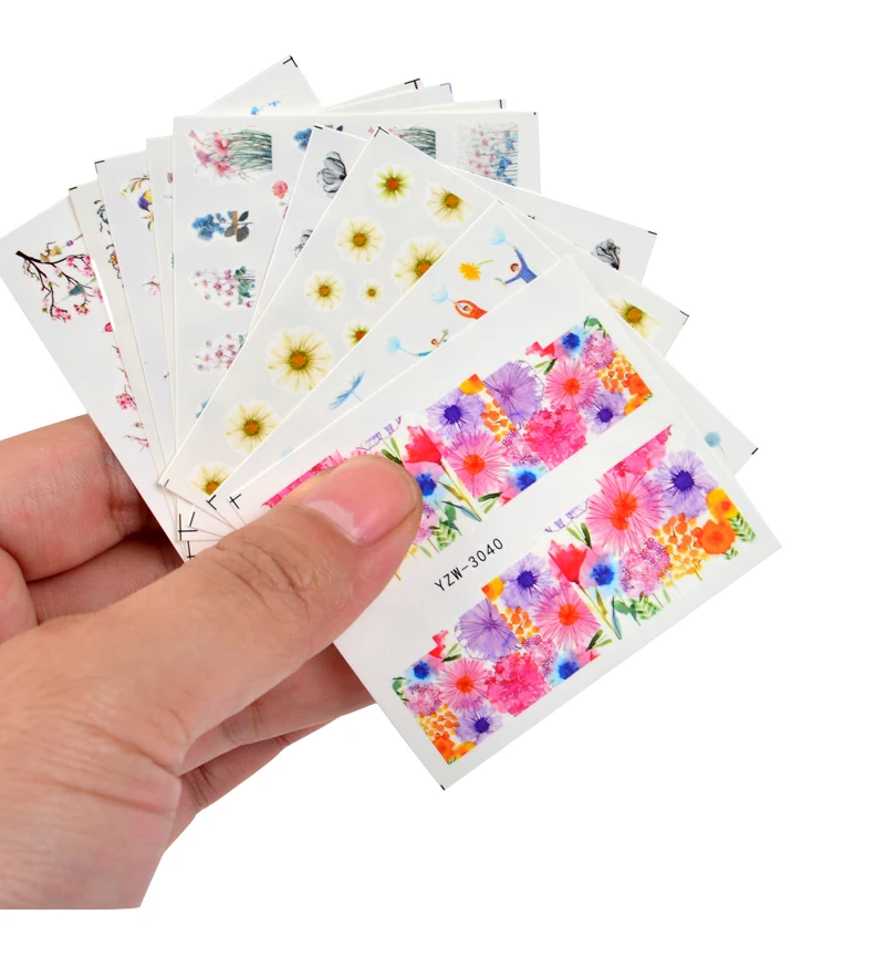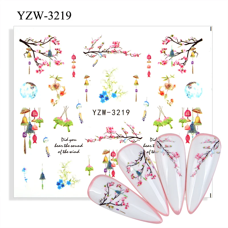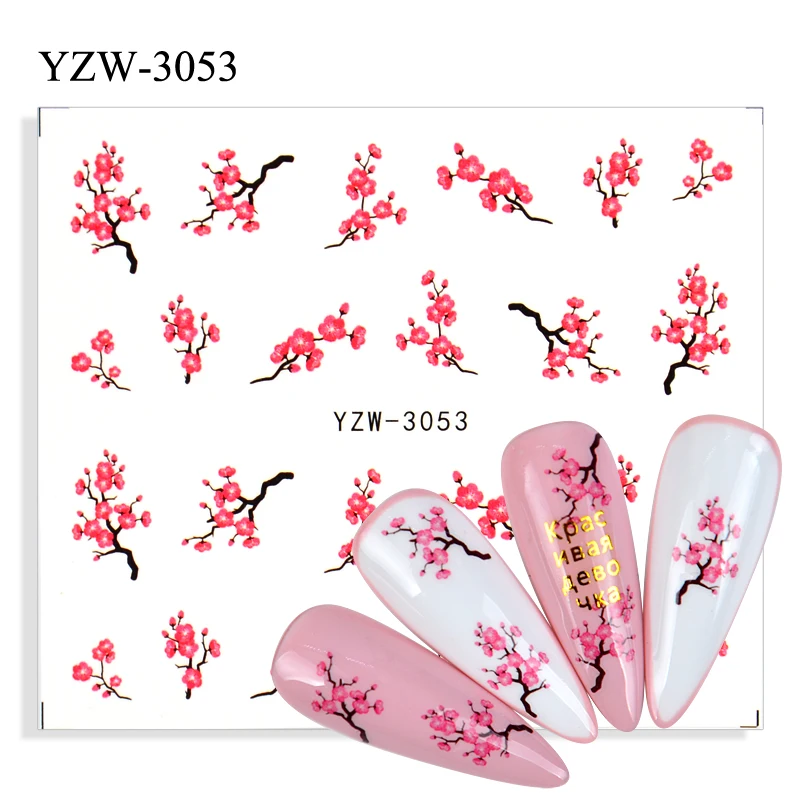 Весенние Сакура наклейки для ногтей переводные розовые вишни цветы листья ветви