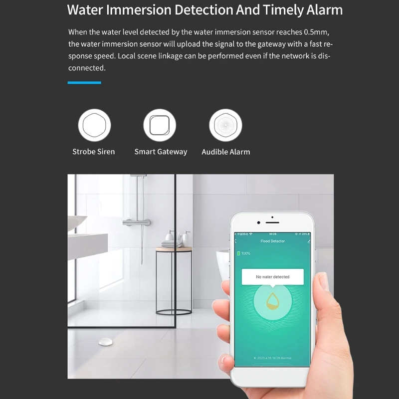 Не нужно устанавливать, просто поместите его в место, где легко протекает. IPX6 Водонепроницаемый дизайн, он может продолжать работать даже после затопления.
