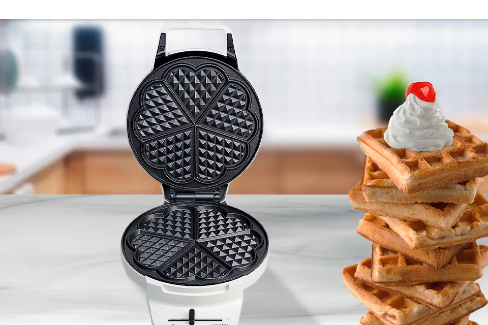 Корпус вафельницы выполнен из термостойкого пластика, а формы для выпечки покрыты антипригарным покрытием.