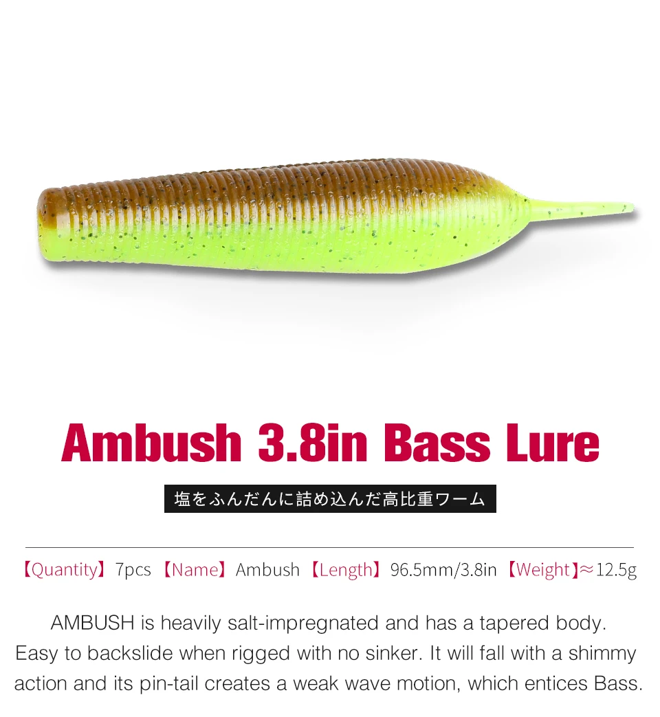 Засада TSURINOYA сильно пропитана солью и имеет сужающееся тело. Легко откидывается при зацеплении без грузила. Он упадет с мерцающим действием, а его булавка-хвост создает слабую волну, которая соблазняет басы.