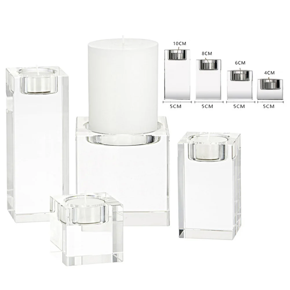 Размер набора из 4 подсвечников: 5 см * 5 см * 4 см, 5 см * 5 см * 6 см, 5 см * 5 см * 8 см, 5 см * 5 см * 10 см