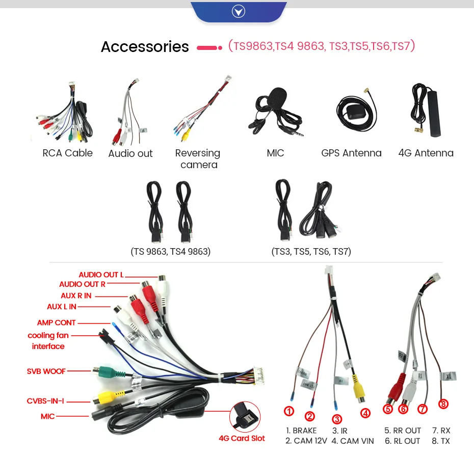 TS3, TS5, T6S дополнительный av-выход для поддержки дисплея подголовника