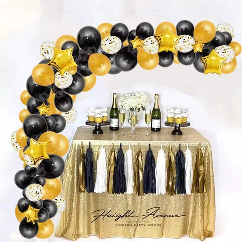 Черные золотые шары комплект гирлянды 112 шт., набор украшений для вечевечерние на день рождения, детский душ, выпускной, годовщину, свадебную вечеринку