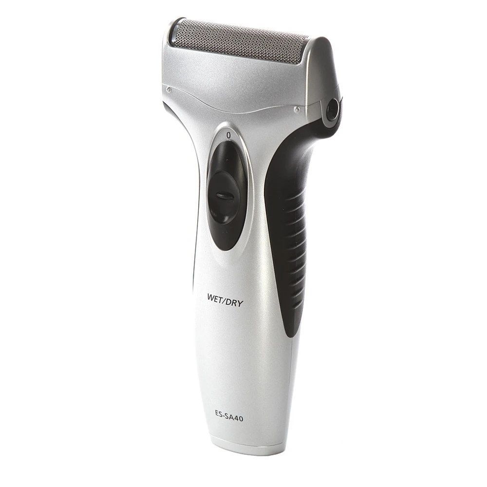 Аккумуляторная бритва. Подвижная головка с выдвижным триммером. Индикация разрядки. Режим влажного бритья и промывка под водой. Время непрерывной работы 21 мин. Вес: 200 г.
