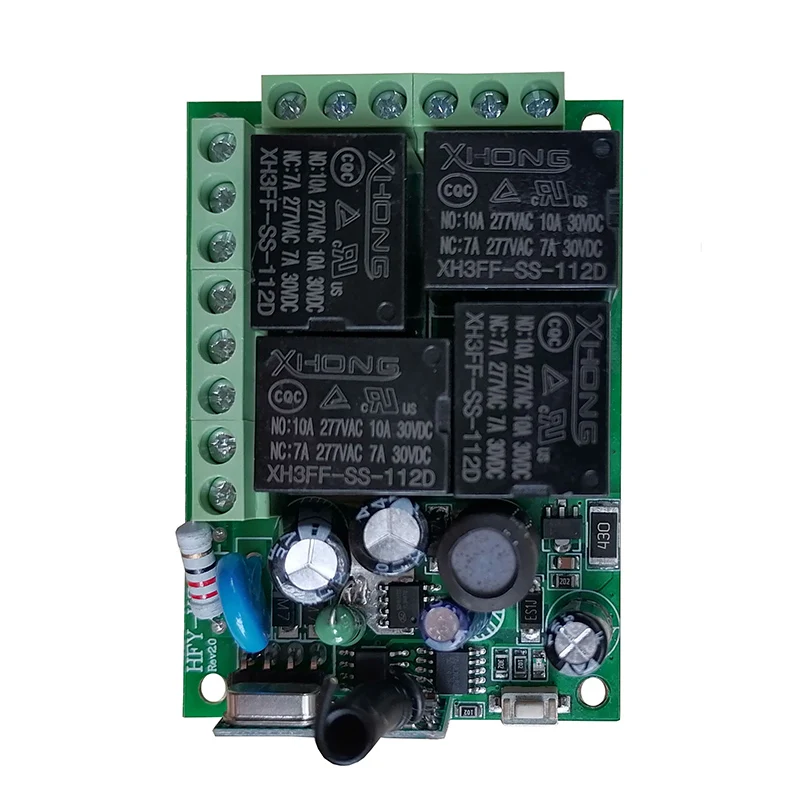 4.2CH мгновенный + 2CH переключатель: Нажмите кнопку обучения на плате приемника четыре раза (светодиодный индикатор на плате приемника будет сигнализировать одновременно), затем нажмите любую из кнопок дистанционного управления, сигнал три раза через светодиодный индикатор дистанционного управления означает успешную настройку.