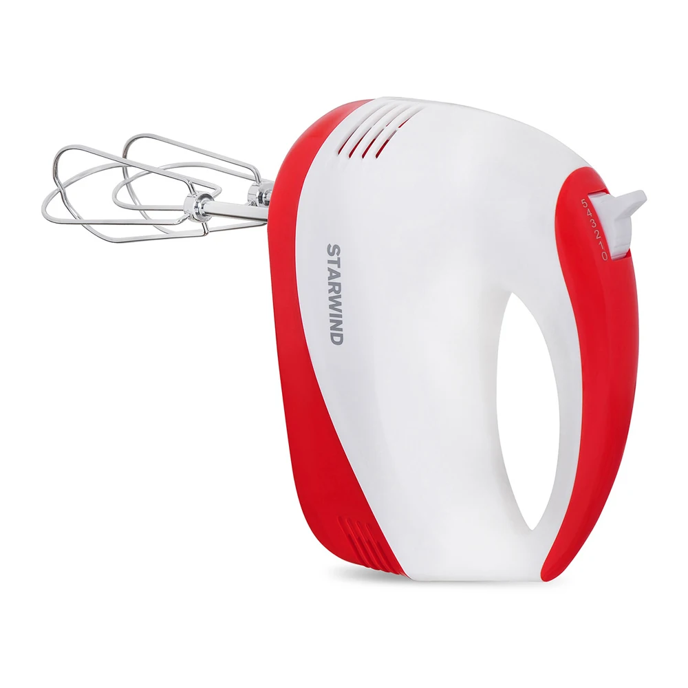 Пожалуй, любой хозяйке будет сложно вернуться в то время, когда все процессы на кухне выполнялись вручную. Да и зачем, ведь сегодня производители бытовой техники позаботились о том, чтобы все автоматизировать все процессы. Среди списка маст-хэв приборов одним и первых стоит ручной миксер, поскольку он не только упрощает процесс, он позволяет выполнить такие простые, на первый взгляд, задачи, но невероятно трудозатратные без его помощи, например: взбить яичный белок до состояния густой пены, приготовить крем из сливок, подготовить тесто для заварных пирожных и т.п. Миксер ручной STARWIND SHM-251 с легкостью справится со всеми своими прямыми задачами, но при этом, благодаря эргономичной форме ручки и легкой конструкции даже долгая работа с данным прибором не оказывает нагрузки на кисти рук. Корпус прибора изготовлен из пластика белого цвета с элементами декора кораллового оттенка. Данный материал используется неспроста, поскольку он прочный и легкий, что актуально для приборов ручного назначения. С передней и тыльной стороны предусмотрена перфорация для вывода горячего воздуха и предотвращения перегрева мотора мощностью 250 Вт. Питание осуществляется от сети 220 В переменного тока с помощью несъемного сетевого кабеля. В верхней части корпуса на ручке расположен переключатель скоростей, что позволяет регулировать мощность, задействовав всего один палец рабочей руки.