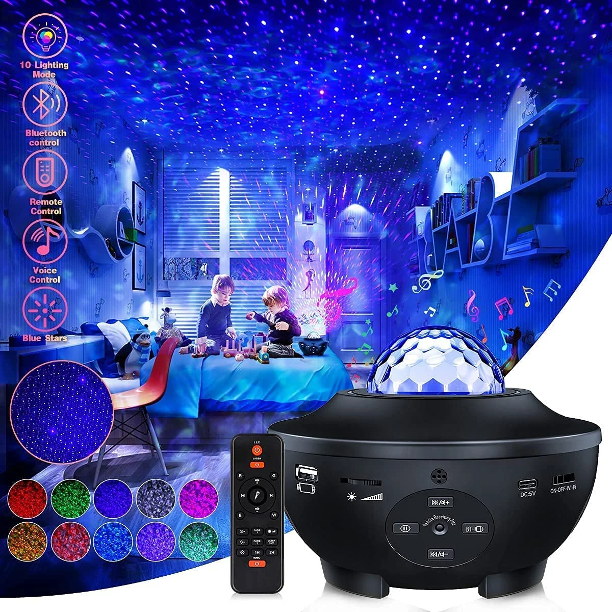 Проектор Galaxy Ocean Wave ночник Звездный проектор 43 режимов освещения с ре...Купить сейчас