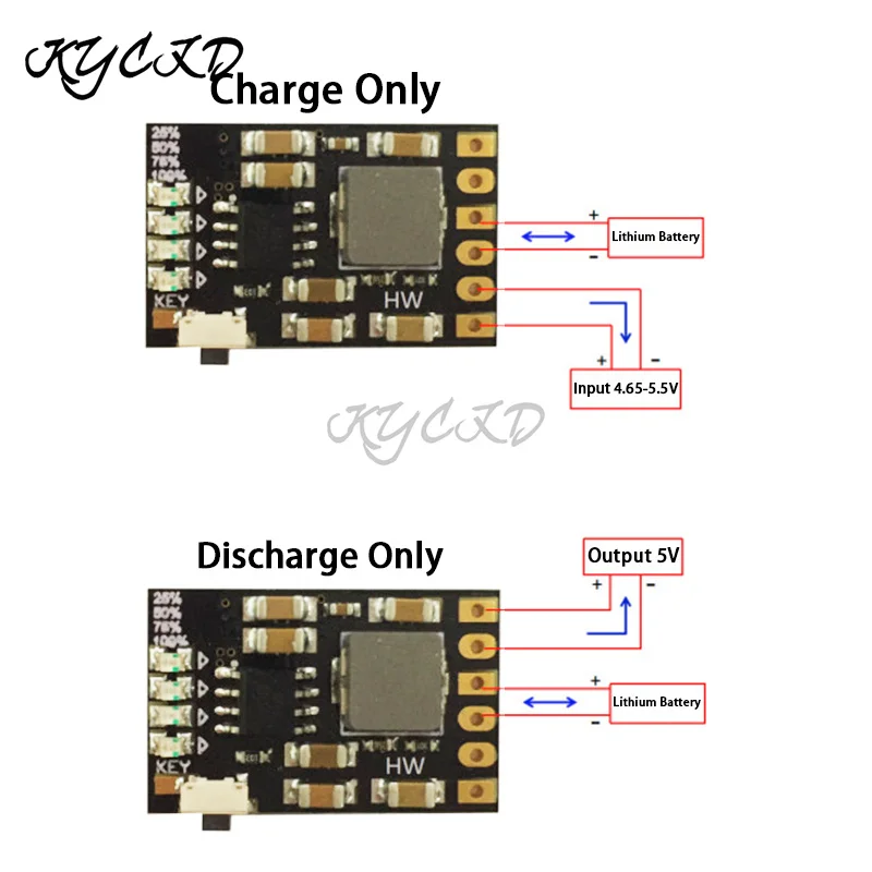 При использовании литиевой батареи ее зарядка и разрядка должны быть защищены от цепи, чтобы защитить литиевую батарею от повреждения или получить безопасный источник питания от литиевой батареи. Мобильный модуль питания используется для защиты зарядки и разрядки литиевых батарей. По сравнению с общей платой защиты литиевых батарей, модуль имеет 4 светодиодный индикатор, указывающий силу тока литиевой батареи.